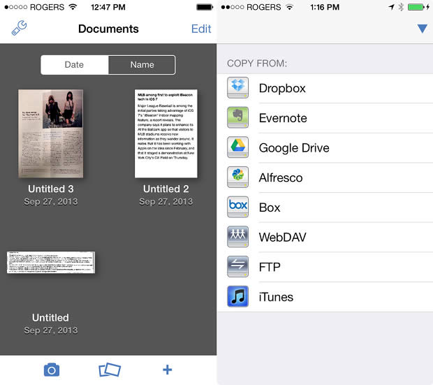 PDFpen Scan+ transforma tu iPhone, iPod touch y el iPad en un scanner portátil. Con esta aplicaciones para iOS, es muy practico digitalizar documentes, extraer textos de ellos, usando OCR (optical character recognition), prácticamente de la misma forma como lo harías en un ordenador. Los archivos son guardados en formato PDF y pueden ser compartidos via correo, y para los servicios de almacenamiento en la nube populares como Dropbox, Google Drive, Box y Evernote. La app también puede importar y exportar documentos, usando iTunes, con servidores FTP y WebDAV