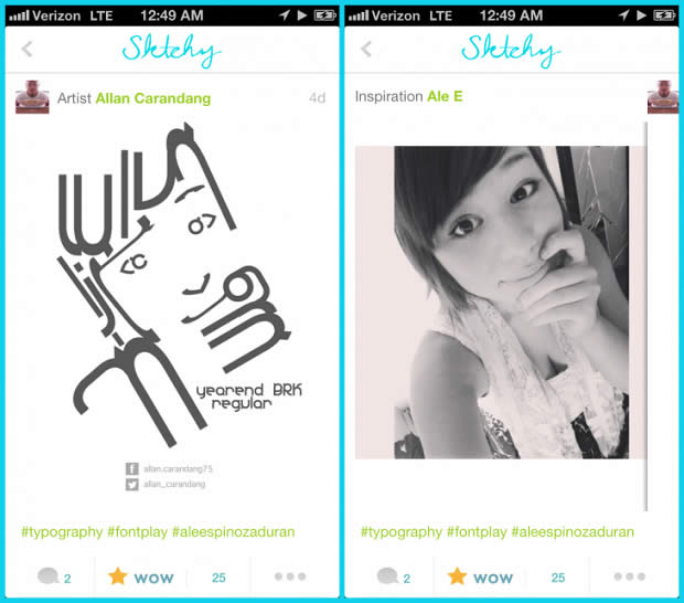 Sktchy es una especia de Instagram para quienes le gustan diseñar y compartir su talento en Internet. Con esta apps para iOS, puedes crear diseños inspirados por una imagen real disponible en el programa. En la pantalla de inicio, te muestra un feed con los últimos diseños que están de “moda”, ofreciendo opciones para disfrutar, comentar y compartir el arte creado. Y para saber en que foto fue inspirada el diseño, solo tienes que deslizar el dedo por encima de la imagen, de izquierda a derecha, y la foto original te sera mostrada.