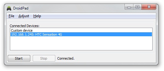 Con todo en su lugar, la tarea ahora es elegir cómo utilizar el software. En la parte superior de la interfaz principal DroidPad: PC Joystick & mouse, encontrará un menú con tres opciones: es posible usarlo como un joystick, como un ratón normal, o para el control de una presentación de diapositivas.