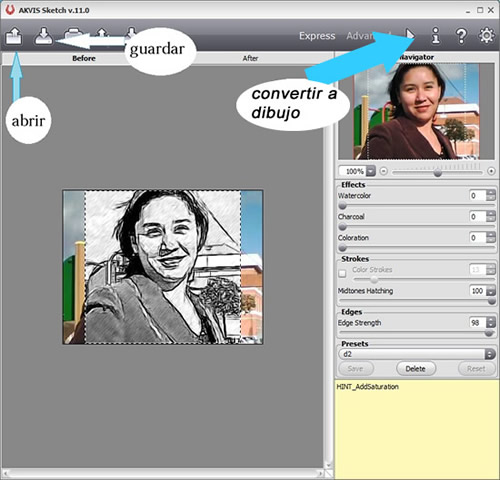 El segundo programa se llama AKVIS Sketch es de pago, pero se lo puede utilizar de forma completa por 10 dias. A diferencia del primero la calidad de los dibujos es mucho mejor, al igual que el anterior su uso es muy sencillo a la hora de convertir nuestras fotos en dibujos.