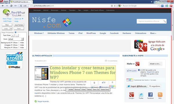 PrintWhatYouLike es una aplicación web que nos permite seleccionar y editar completamente un sitio web para imprimir solo lo que nosotros seleccionemos y editemos.