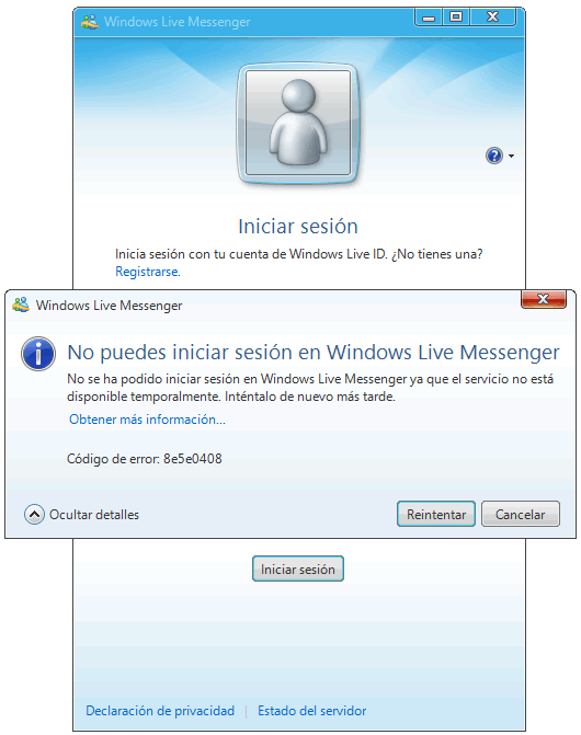 Error 8e5e0408 en el Inicio de Windows Live Messenger
