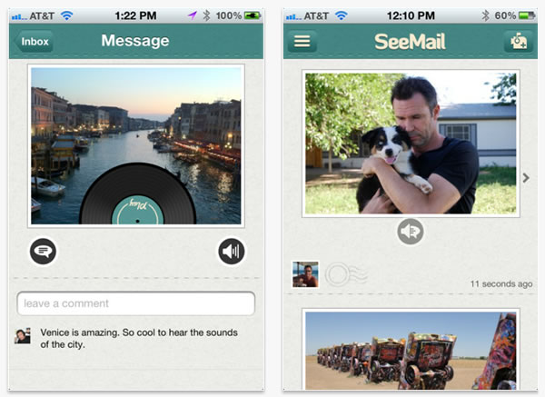 SeeMail es una aplicación para los dispositivos iOS de Apple, esta aplicación añade audio a las imágenes que tengamos guardadas en nuestro iPhone, iPad, iPod Touch. Podemos agregar pequeñas locuciones de voz y compartirlas por algunas de las redes sociales a las que pertenezcamos: Facebook, Twitter, Google+.