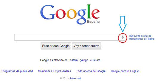 Nos descargamos la extensión xSpeechKit y la instalamos, luego nos vamos al buscador de Google y en la caja de búsquedas de veremos el icono del micrófono. Hacemos clic en él icono, nos pedirá que hablemos.