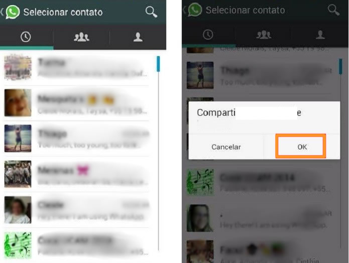 Paso 10. Escoge un grupo o un contacto a quien le vas a enviar el video, después de tocar sobre el contacto, deberás hacer clic en “Ok”.