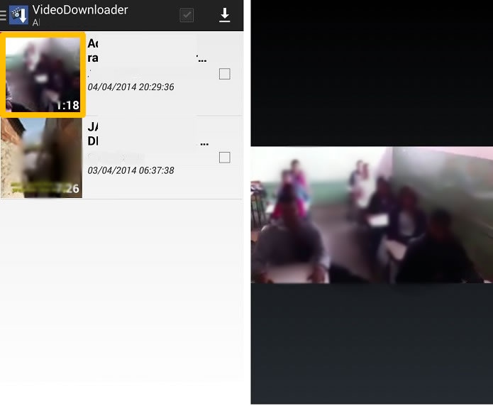 Paso 6. Para descargar el video de Facebook, solo hay que tocar en el “Cuadrado o Caja, como quieras llamarlo”, y después en la imagen con una flecha hacia abajo que está en la parte superior derecha de la pantalla. También puedes marcar más de un video para descargar de forma simultánea.