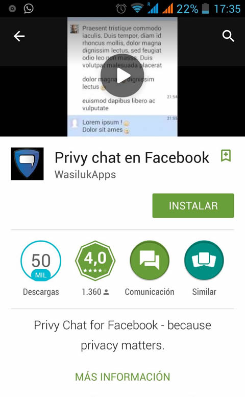 O sea, lo ideal es utilizar la aplicación sólo cuando quieres ver algún mensaje sin dejar rastro a tus amigos. Es decir puedes utilizar Facebook Messenger tranquilamente y abrir la aplicación Privy sólo cuando quieras que no sepan que has leído los mensajes del chat. Resumiendo es una aplicación que no interfiere en el funcionamiento del otro.