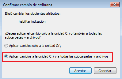 - Permitir que los archivos de esta unidad tengan el contenido indizado.