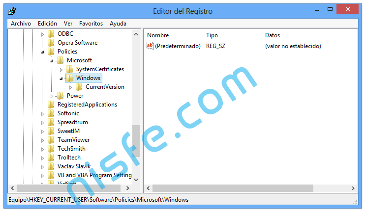 HKEY_CURRENT_USER \ Software \ Policies \ Microsoft \ Windows