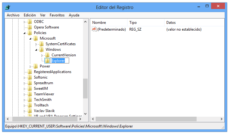 Paso 2. En la parte izquierda del registro de Windows 8, tienes que buscar dirigirte a la siguiente clave: